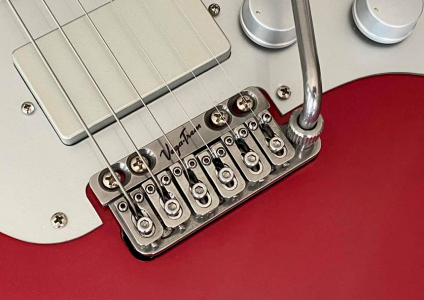 "Un aspecto superimportante para tocar esta strat es su "twang bar". ¡El Vega-Trem es fabuloso! ¡qué vibrato tan dinámico! fabricado en España este diseño tira hacia arriba o hacia abajo y nunca afecta a la afinación. tiene una sensación delicada pero resistente que es perfecta para mí". Y añade: "No te lo pienses, pon uno en tu strat ahora: se adapta a una strat usando los mismos 4 tornillos y se puede instalar rápidamente sin necesidad de routing".