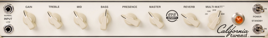 Ahora le rinde homenaje a aquellos combos Fender con el nuevo California Tweed 6V6 4:40. Nombre que hace referencia a las válvulas de potencia que monta: cuatro 6V6 además de las cinco 12AX7 y una 12AT7 en previo.