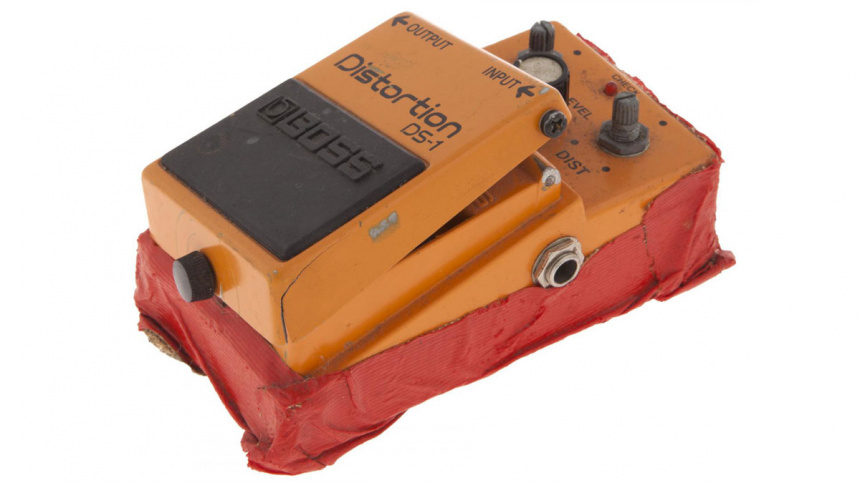 La astronómica cantidad de 6 millones de dólares por la que se ha acabado vendiendo la Martin D-18E que Kurt Cobain usó en el MTV Unplugged de Nirvana, y que ha batido por 2 millones el anterior récord de la Black Strat de David Gilmour, ha eclipsado un poco este otro ítem vendido en la misma subasta de Julien's Auctions; un pedal Boss DS-1 destrozado que ha alcanzado un precio de casi 9.000 dólares.