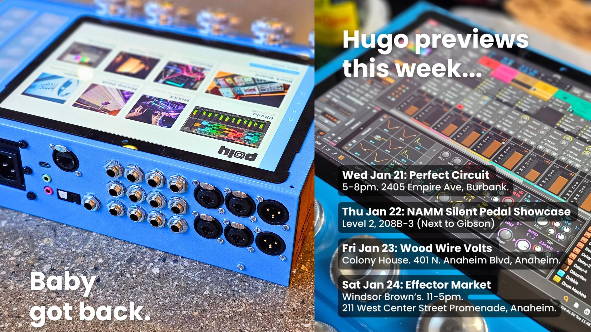 La segunda retoma una de las quimeras del mundo del software digital: llevar nuestros DAWS y plugins a un soporte hardware que nos permita emplearlos en directo o ahorrar CPU a nuestros ordenadores. Se trata del intrigante Poly Effects Hugo.