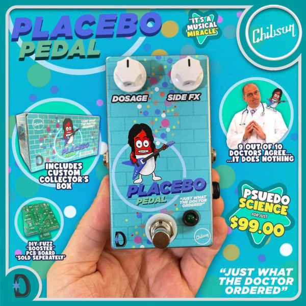 Con todo el planeta preocupado con las dosis y los efectos secundarios de las vacunas, Daredevil Pedals y Chibson USA –una iniciativa satírica especializada en memes y productos delirantes para guitarristas que no siempre son falsos, como aquella púa Dunlop gigante para que no la pierdas–, han creado una curiosa campaña promocional para vender un efecto de guitarra que en principio es totalmente inocuo, el Placebo Pedal.