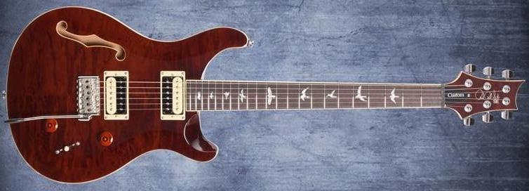 El modelo SE Semi-Hollow Custom 22 es una de las opciones más asequibles del catalogo PRS con este tipo de construcción semisólido. Su elegante estética con la clásica ƒ en la la parte superior del cuerpo se ha actualizado ahora con una lámina de Arce acolchado en tapa y pala con 4 nuevos acabados que la compañía ha bautizado como Trampus Green, Blue Matteo, Whale Blue y Tortoiseshell.