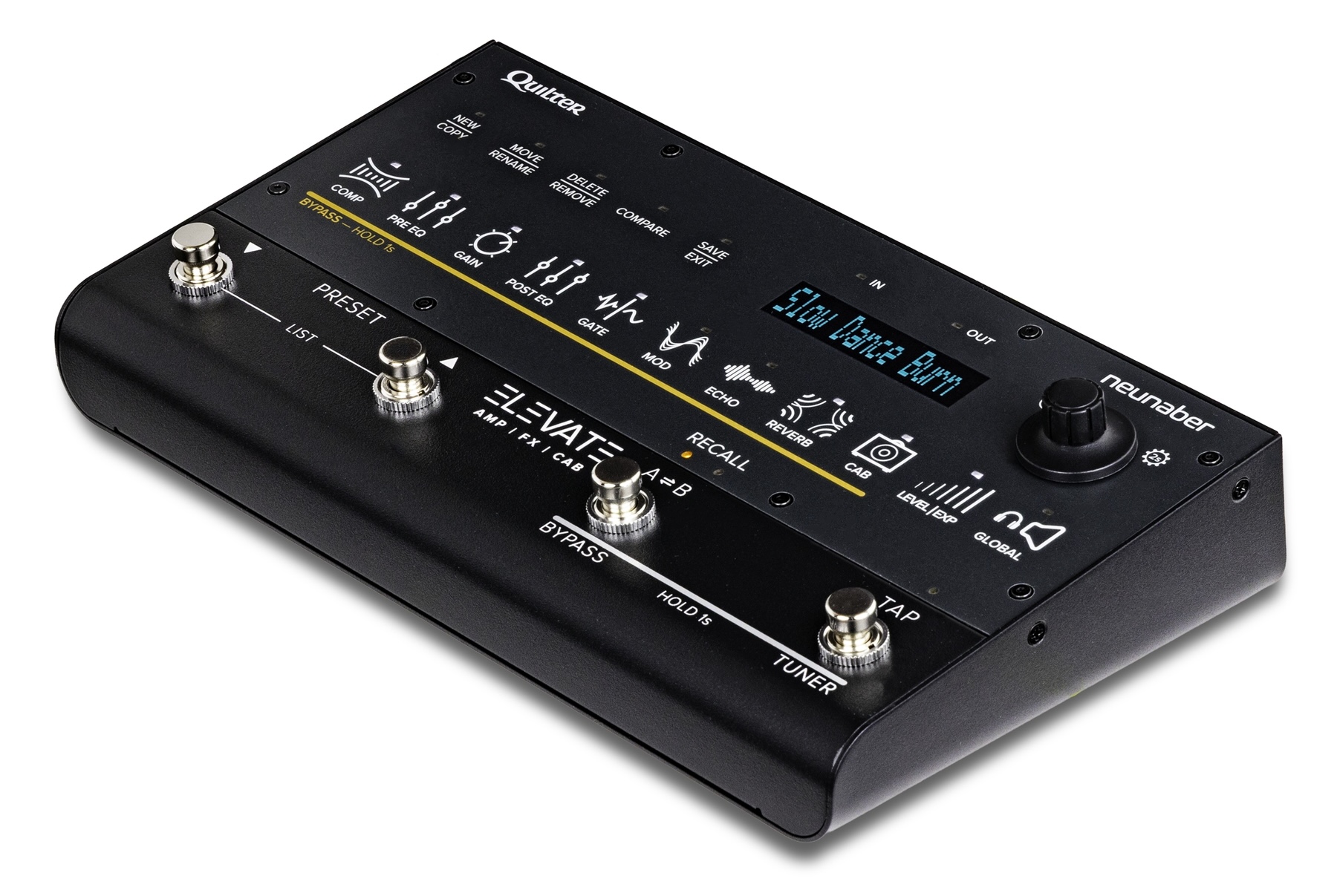 A pesar de que hoy en día muchos multiefectos son casi plug&play, y prácticamente no hace falta mirar el manual, hay muchos guitarristas a los que les abruma tener que navegar por complejos menus, editar parámetros, o acceder al montón de opciones que ofrecen, incluso el más barato de ellos. A ellos parece ir dirigida esta unidad fruto de la colaboración entre Quilter, la empresa especializada en amplificación a transistores, y la marca de pedales californiana Neunaber.