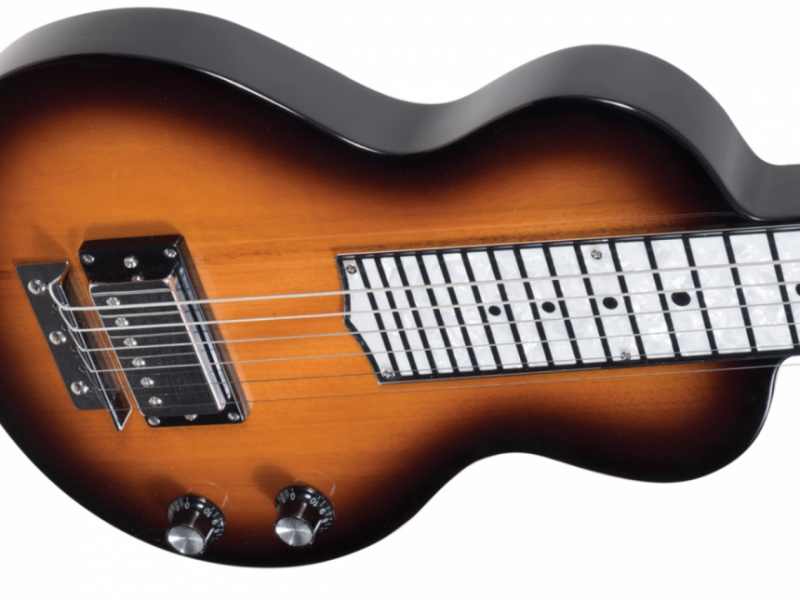 El mástil y el cuerpo con un acabado Gloss Sunburst de esta Lap Steel son de Caoba con un diapasón nacarado y una escala de 23.5". La cejuela es de hueso, y tiene un puente con cuerdas a través del cuerpo para un mejor sustain. Sale de fábrica con un calibre de cuerdas 015 - 017 - 024 - 032 - 045 - 056.