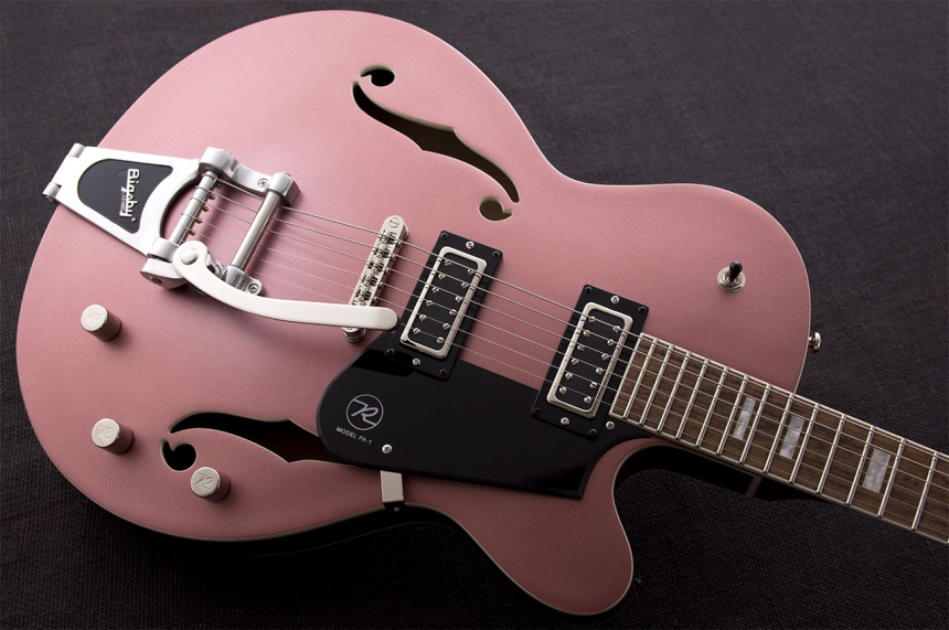 La nueva Pete Anderson Signature PA-1 RB tiene un cuerpo con aros y fondo de Arce laminado con un bloque central de Korina para reducir la realimentación, y una tapa de de Abeto laminado; el mástil es encolado de 3 piezas de Korina con escala de 24 3/4"; diapasón de Blackwood Tek con 22 trastes Medium Jumbo y radio de 12"; un vibrato Bigsby B-70 con muelle de acción suave; y un par de mini-humbuckers Retroblast.