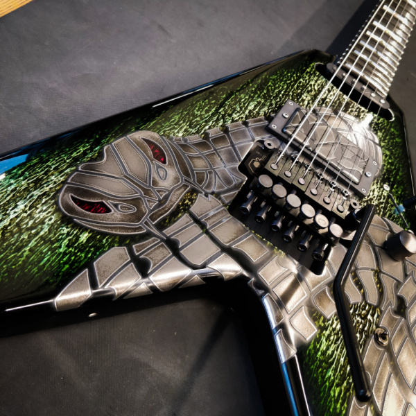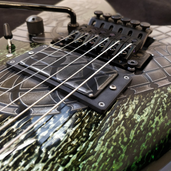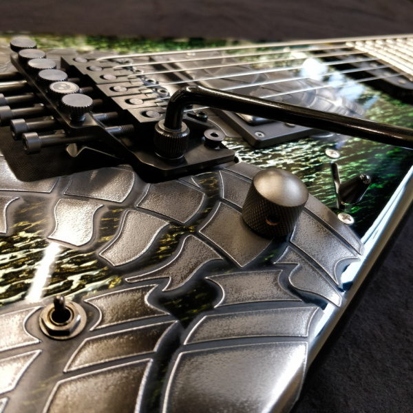 La WH-1 Special Bionic Snake destaca por el cuerpo de Arce con una tapa de Lacewood con el gráfico de una serpiente en relieve inspirada en la portada del nuevo álbum de Accept, "Too Mean To Die", con un acabado Sandblasted con tonalidades verdes y cromadas hechas con auténtico acero para realzar ese aspecto 3D.