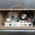 Pero Matt Richards no se limita a las radios. Es capaz de montar un amplificador en casi cualquier trasto viejo que encuentre o que le lleves. Sirva como ejemplo este cabezal hecho con una antigua plancha de hacer Gofres: