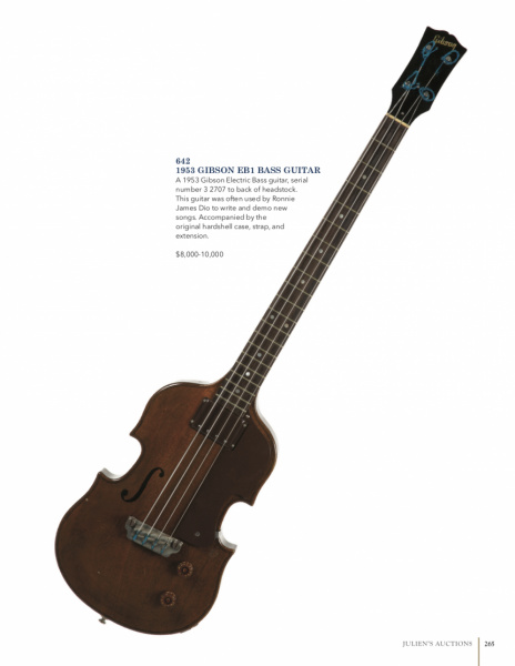 También hay un buen número de guitarras y bajos usados por Ronnie James Dio a lo largo de su trayectoria profesional, entre las que se encuentran una Gibson Melody Maker de 1959, una Charvel blanca decorada con la figura de un mago, una antigua guitarra acústica que le regaló su padrastro en 1976, o el bajo Gibson EB-0 de 1961 que Dio tocaba con Elf.
