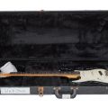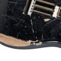 Esta Fender Stratocaster MIJ zurda fue masacrada en el escenario a principios de los 90 durante la gira del álbum "Nevermind", y como resultado acabó con parte del mástil, diapasón y pala partida (sólo quedan 3 de los afinadores Gotoh), además de faltarle un trozo en la parte trasera del cuerpo y tener golpes y arañazos por todo el instrumento.