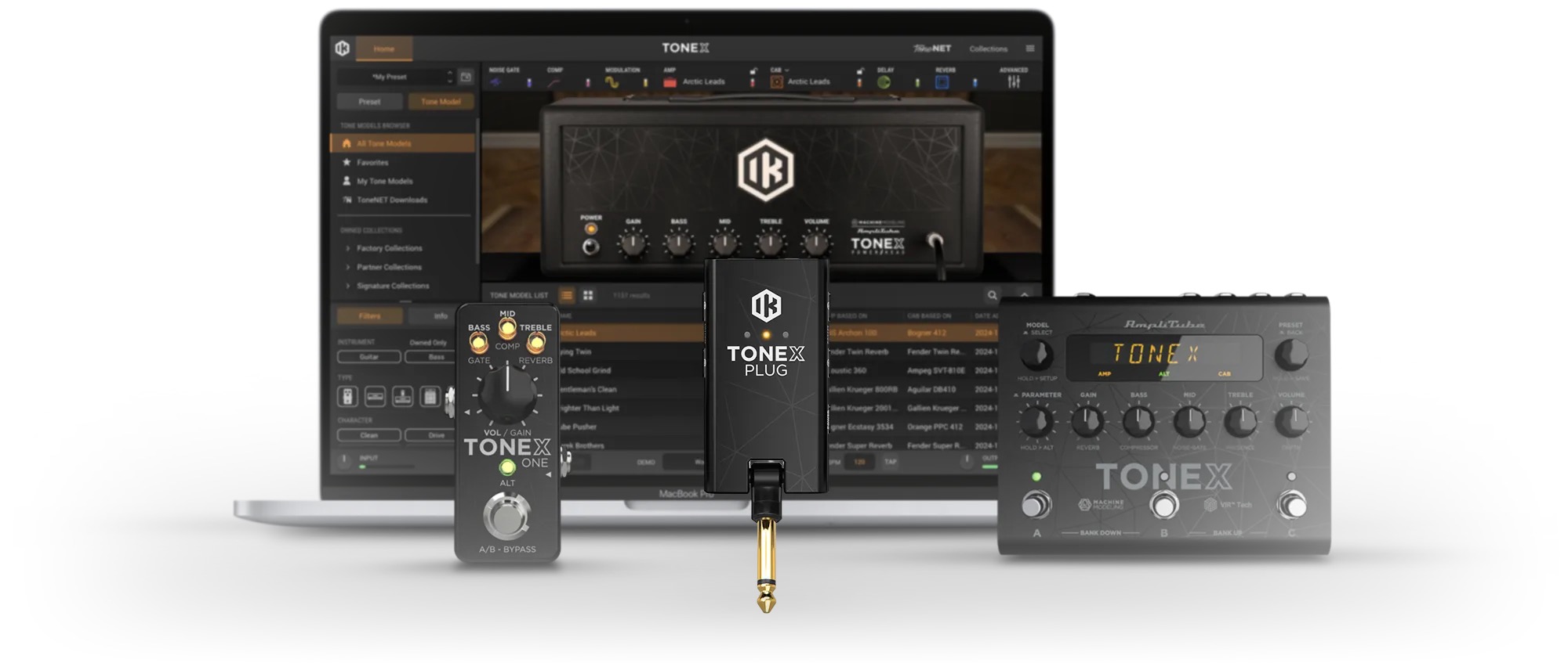 Algo que los usuarios de los antes mencionados pedales ya conocen, pero ahora en un formato de bolsillo para practicar con auriculares. Mediante la app complementaria Tonex Control, es posible ajustar la cadena de señal, incluyendo amplificadores, altavoces, respuestas de impulso (IR), ecualizadores y efectos. Los Tone Models personalizados se organizan en 30 presets de usuario, distribuidos en 10 bancos codificados por colores.
