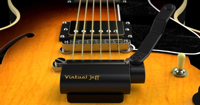El Virtual Jeff puede trabajar también a través de un pedal desde donde podemos intercambiar entre distintos modos; por ejemplo podemos configurarlo de forma que trabaje como un bigsby (dos semitonos hacia abajo y un semitono arriba) o como un Floyd Rose (dos octavas abajo y una hacia arriba), entre algunas de sus muchas posibilidades.