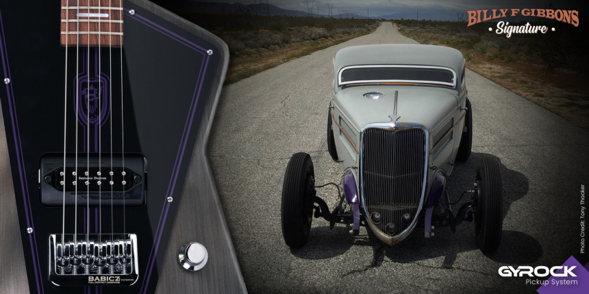 Billy Gibbons es conocido por sus guitarras estrafalarias y por no hacerle ascos a ningún tipo de innovación, como aquella vez que insertó un iPad Mini en el cuerpo de una Telecaster. Así que no es extraño que su nueva guitarra signature que le ha construido Wild Custom Guitars, cuente con el sistema Gyrock de intercambio rápido de pastillas que esta compañía francesa presentó hace un par de años, y que consiste en un artilugio mecánico con forma de cilindro que permite cargar 3 pastillas diferentes y acceder a ellas rápidamente tan solo girándolo.