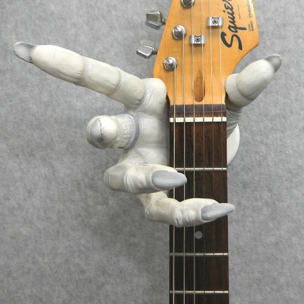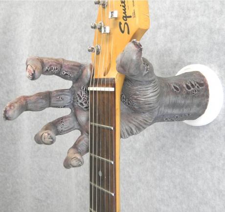 Hace tiempo que circulan los colgadores en forma de mano para nuestras guitarras y bajos, pero nos han gustado mucho estos de Millafied, que ofrecen unos acabados bastante realistas y que pueden dar un toque diferente a nuestra sala de ensayo o habitación y más si eres un fan de las pelis de vampiros o de zombis. Empresas como Grip Studios también tienen sus propias versiones.