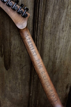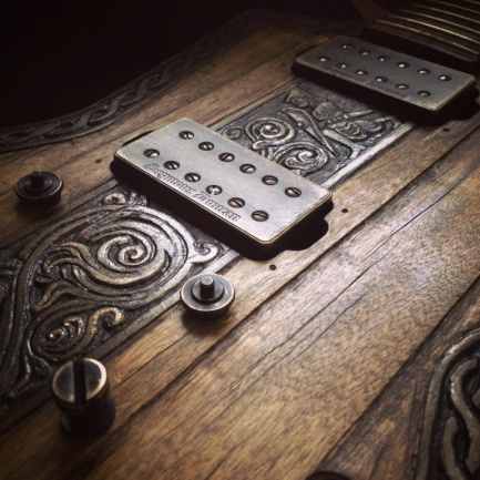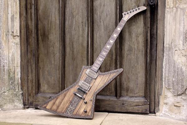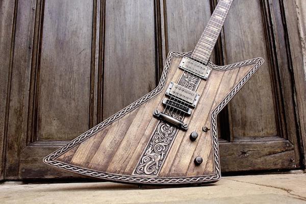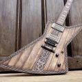 Hutchinson lo ha vuelto a hacer; una de sus customizaciones más aclamadas de los últimos tiempos ha sido su concepto Viking, del que ha realizado tres versiones, SG, Flying y Les Paul. Esta vez le ha tocado el turno a la Explorer y para ello se ha basado en una ESP Edwards Explorer. Y el resultado vuelve de nuevo ser espectacular, inspirándose en la mitología vikinga esta vez en el centro tenemos una pictografía que representa la lucha épica entre Sigurd y el dragón Fafnir. Una preciosa cenefa rodea toda la guitarra, que está equipada con pastillas Seymour Duncan Black Winter con cubiertas de bronce envejecido.