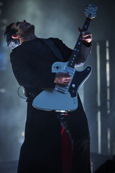 En 2021 hice un video para mi proyecto solista Emigrate y estaba tratando de usar una guitarra diferente solo por un tema meramente visual. Stefan de Sound Service me dio la guitarra Phoenix de ESP, que tiene el cuerpo de una Gibson Firebird antigua. Fue la primera vez que estrenaba una guitarra tocando en vivo en lugar de sentado. Era una forma diferente de abordar una guitarra. No me había dado cuenta de que era tan divertido tener ese tipo de cuerpo. Noté que era muy ruda, y pensé que la forma del cuerpo me invitaba a tocar de otra manera.
