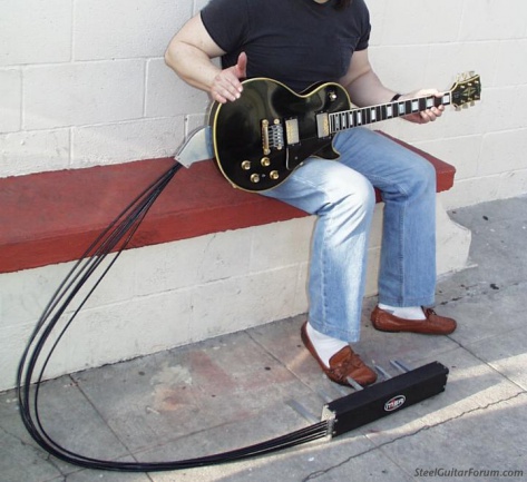 Hace tiempo que os quería hablar de los sistemas MSA, un invento muy curioso que tuvo su auge en los años 80 sobre todo entre los guitarristas de estudio en Nashville. El sistema consistía en un armatoste con seis pedales que mediante un sistema hidráulico permitía la posibilidad de alterar la afinación de las cuerdas independientemente. Este sistema está basado en el B-bender, un estilo de guitarras que consisten en un complicado sistema de muelles, alojado en el interior de la guitarra y que mediante un resorte en el enganche de la guitarra permite modificar la tensión de la cuerda, como si hiciéramos un bending pero de forma mecánica. Seguramente muchos que lo lean se preguntarán porque no se puede hacer con un bending normal, pero es que la gracia del asunto está al estirar esa cuerda mientras las otras permanecen completamente en su sitio, creando efectos sonoros muy apreciados entre los fans de la música country por su similitud con el pedal steel. Artistas como Brad Paisley o Will Ray de The Hellecasters son auténticos maestros del invento.