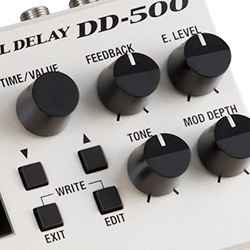El pedal de delay Boss DD-500 es, en el momento actual, el dispositivo especializado en eco más completo que ofrece la marca en este momento. Ofree más tipos de delay que cualquiera de los otros pedales de delay de su catálogo y está cargado con infinidad de complejas prestaciones. Es capaz de emular diversos tipos de delay analógico, al tiempo que incluye delays de corte más futurista (como delay con modulación, pitch shifting o filtros) que nos permiten acceder a sonidos algo menos convencionales. Todo ello sumado a la posibilidad de memorizar nuestros presets, controlarlo por MIDI o utilizar su looper integrado lo convierten en una herramienta muy atractiva.