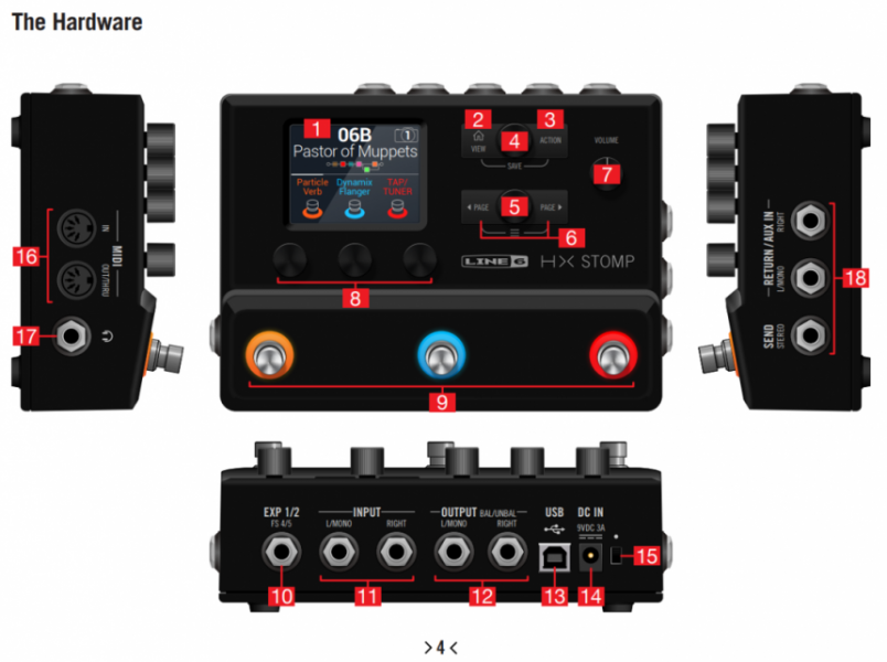 [Índice]Es cierto que la HX Stomp ve su capacidad actual limitada a 6 bloques de efecto (y en función del consumo de CPU de cada efecto en concreto). Pero aún así, seguimos disfrutando de un gran número de presets, podemos navegar entre bancos, entre 3 snapshots por preset, hacer rutas internas o externas de efectos —seriales o paralelas— y aprovechando sus entradas y salidas físicas, podemos hacer conexiones simultáneas a línea y a ampli o usar el famoso sistema de los 4 cables. Podemos usar amplis emulados con pantalla, o si lo preferimos, utilizar cualquiera de sus partes por separado, combinarlo con nuestras respuestas de impulsos, sacar partido a sus efectos en estéreo, utilizar su looper incorporado o hacer que la unidad se comporte como una biblioteca de efectos individuales que podemos encender o apagar en cualquier momento. Es algo que ya estábamos acostumbrados a decir de las pedaleras de tamaño grande, pero no tanto de unidades tan compactas como esta.