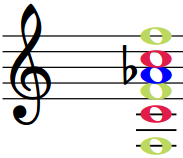 Tomando como inicio la nota Fa para forma una tríada menor, el resultado sería un acorde con las notas Fa, La bemol y Do: