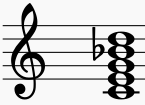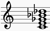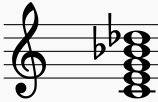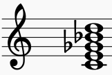 [Índice]Este acorde está formado por un acorde de séptima dominante con quinta disminuida mas un intervalo de novena menor. Si tomamos como inicio la nota Do para formarlo, el resultado sería un acorde con las notas Do, Mi, Sol bemol, Si bemol y Re bemol: