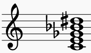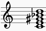 [Índice]Este acorde está formado por un acorde de séptima dominante con quinta disminuida mas un intervalo de novena aumentada. Si tomamos como inicio la nota Do para formarlo, el resultado sería un acorde con las notas Do, Mi, Sol bemol, Si bemol y Re sostenido: